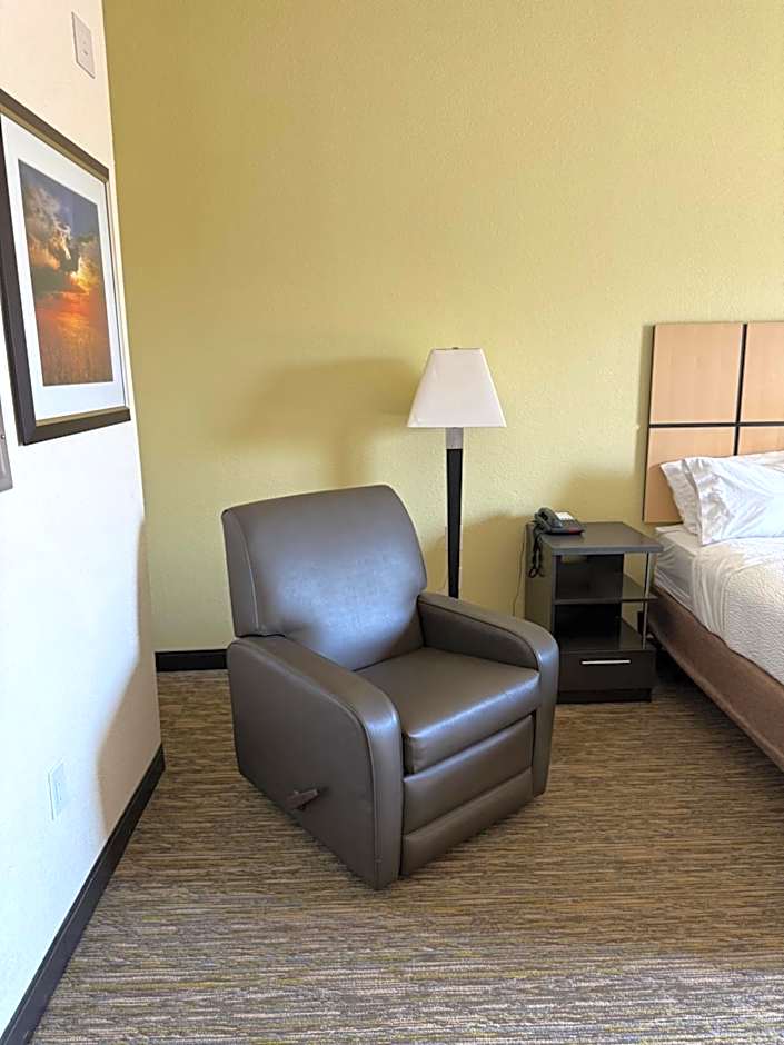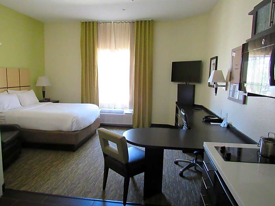 This suite features a stovetop, microwave and dishwasher.